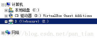 3.虚拟机中的光驱,运行VBoxWindowsAdditions.exe,安装完成后,重启虚拟机中的系统,就能看到主机中的共享目录了。