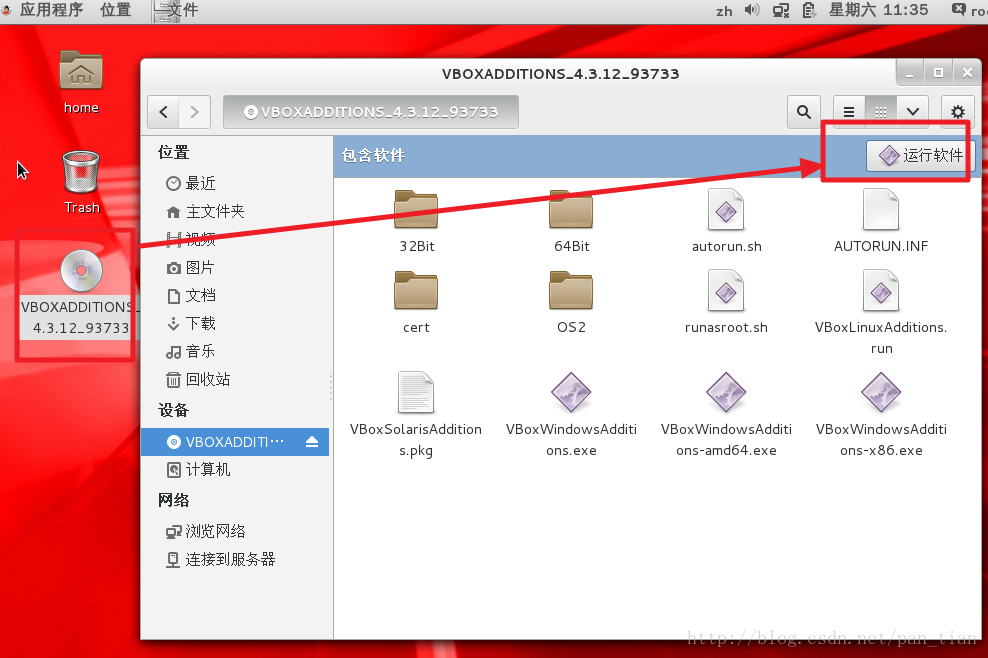 出现VBOXADDITIONS,然后运行此软件